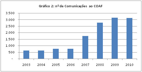 Numa rápida análise comparativa pode-se concluir que o número de comunicações ao COAF feitas pelo setor imobiliário ainda é muito baixo, visto que no Brasil há 75.000 empresas obrigadas, 3.602 no estado e 1.342 em Porto Alegre, cadastradas no COAF em todo o país somente 8.147, e estas comunicaram apenas 3.112 operações (em 2010). Daí conclui-se que o setor está pouco sensível à problemática da lavagem de dinheiro, assim como há pouca eficácia do órgão fiscalizador.